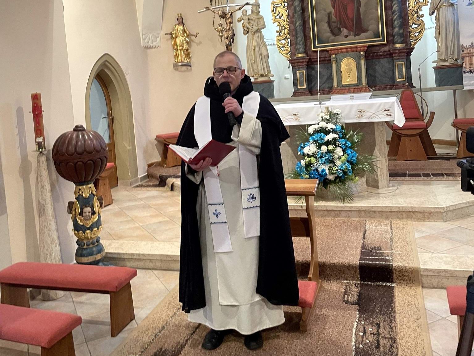 Milý páter Matej, moje poďakovanie patrí najprv Pánu Bohu, za milosť, že sme sa tu dnes stretli na duchovnej obnove nášho ružencového bratstva z príležitosti stého výročia založenia ružencového bratstva v našej obci pri našom kostole, ktorý je zasvätený sv. Kataríne Alexandrijskej. Páter Matej chcem Vám vysloviť poďakovanie v mene svojom v mene nášho ružencového bratstva, v mene našej farnosti, že ste prijali pozvanie viesť duchovnú obnovu pri tomto jubileu. Pri tejto príležitosti myslíme aj na našich predkov, ktorí pred 100 rokmi založili ružencové bratstvo, ktorí sa tu v kostole stretávali na modlitbách. Chceme ďakovať Pánu Bohu, že sme generáciou, ktorá má tu milosť, že sme sa dožili tohto jubilea. Páter Matej ďakujeme vám za Božie slovo, za milé povzbudivé slova prednesené v homílii, za pripomenutie akú moc a silu má modlitba posvätného ruženca aj v dnešnej dobe. Veríme, že tieto slova prinesú ovocie v našich životoch. Uvedomujeme si, že pri modlitbe ruženca spoznávame život Pána Ježiša a spolu s Máriou kráčame za Ježišom od tajomstva k tajomstvu. Páter Matej želáme Vám nech Vás Pán Boh naďalej požehnáva, obdaruje pevným zdravým, radosťou, pokojom a úsmevom na tvári. Zverujeme vás pod mocnú ochranu Kráľovnej posvätného ruženca Panny Márie, nech ona vyprosí všetky milosti, ktoré potrebujete pri svojej náročnej a zodpovednej službe. 100-TÉ VÝROČIE RUŽENCOVÉHO BRATSTVA A DUCHOVNÁ OBNOVAV nedeľu 26. januára 2025, ktorá bola zároveň nedeľou Božieho slova, v roku Svätého jubilea, sme mali v našom farskom kostole, ktorý je zasvätený svätej Kataríne Alexandrijskej milú slávnosť z príležitosti stého výročia založenia Ružencového bratstva v našej obci, vo Vyšnej Šebastovej.